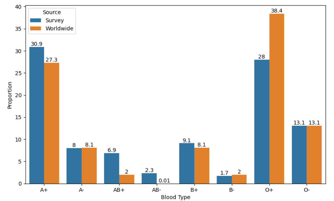 In this project, I analyzed the results of a survey I conducted about blood donation. I used the pandas, plotly, scipy, and seaborn python libraries to create data visualizations.